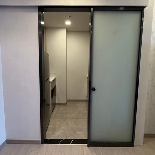Interior frosted glass door with stainless steel frame and jamb