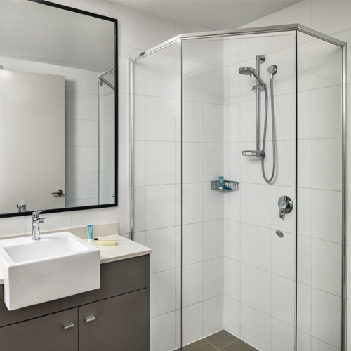 Shower room glass and vanity mirror for Meriton Suites, welcome to inquiry