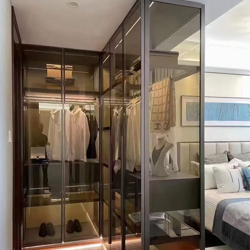 Modern Luxurious Black Aluminum Frame Wardrobe with Glass Door Revolving for Bedroom or Living and Dining Room