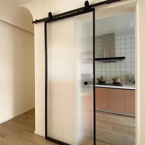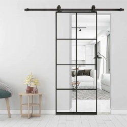 Panoramic Glass Barn Door with Narrow Sightline Aluminum Stile and Rail Frame and Barn Door Hardware Kit