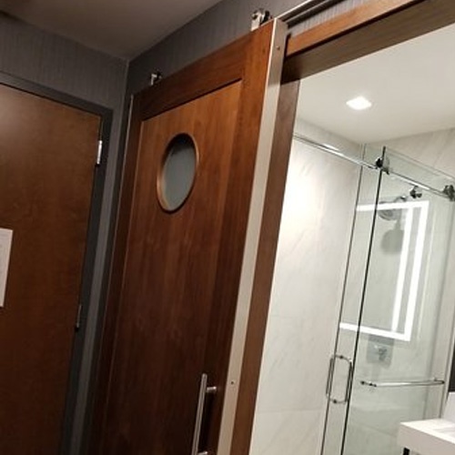 Bathroom barn door in four points hotel by Sheraton