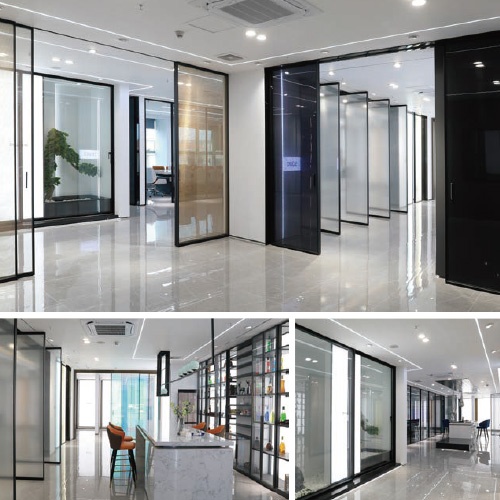 Configuration: aluminum door stile and rail, track & floor, jamb & casing. The door can be operated by inward or outward swinging, pivot, bifold and stacking, bypass sliding, pocket door and barn door
