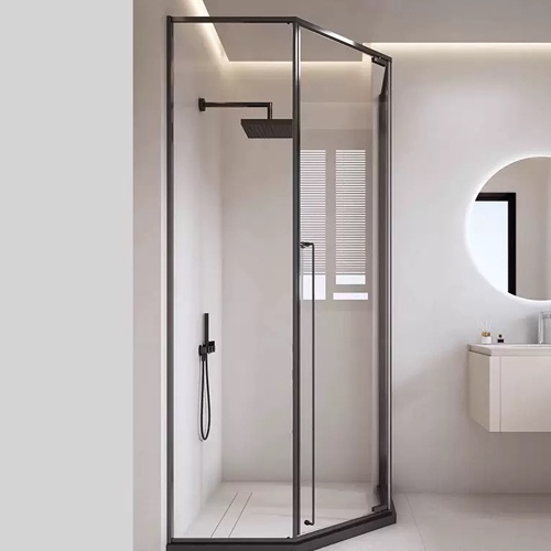 Diamond shape corner shower enclosure by clear tempered glass