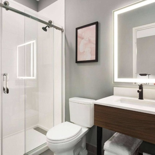 Next Product:Glass shower door and LED backlit mirror for hotel bathroom in Dubai