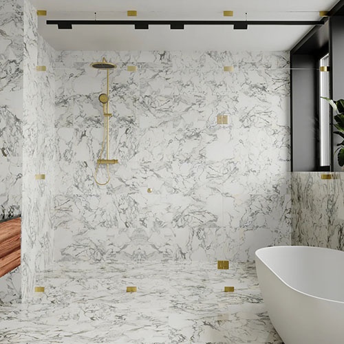 Transport yourself to the heart of Italian luxury with Arabescato, a classic marble that paints a canvas of timeless beauty. Shades of white form a gorgeous background, providing the perfect stage for the mesmerizing dance of active gray veining, often in rounded or oval patterns. Versatile and refined, Arabescato is a work of art suitable for flooring, walls, and showers, bringing a touch of Italian allure to every corner.