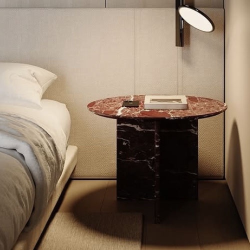 Marble furniture bedside table by rosso levanto marble for hotel interior designer