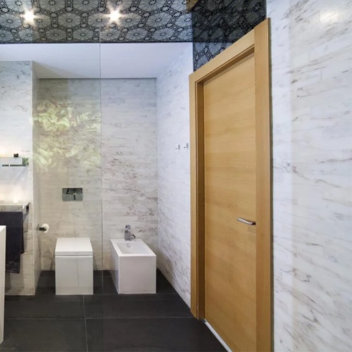 Veneered flush wood door for bathroom with various sketch face design and European door handle