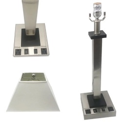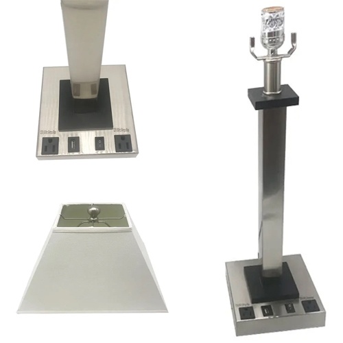 Hospitality Style Metal Table Lamp Fabric Lampshape On/off Rocker Switch and Electrical Outlet Optional USB Port Applicabe in many franchise hotels including Best Western, Super 8, Days Inn, La Quinta etc