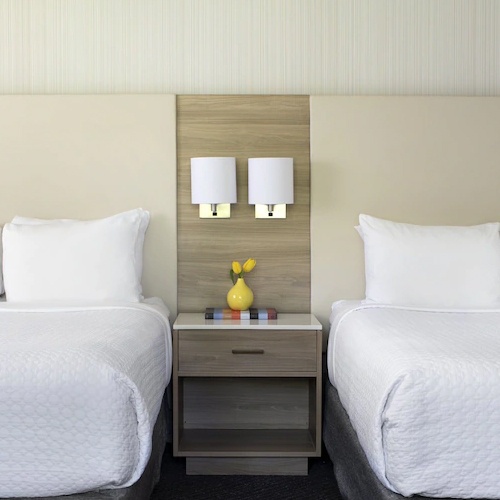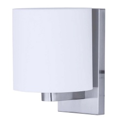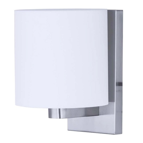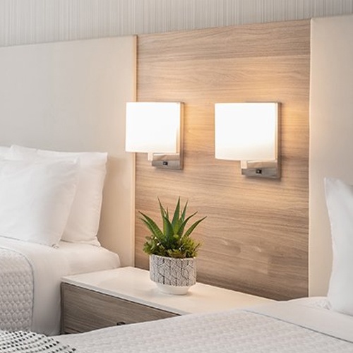 Double Queen Headboard Sconce in Crowne Plaza Hotel White Frosted Acrylic Diffuser with Closed top Brushed Nickel Metal Plate