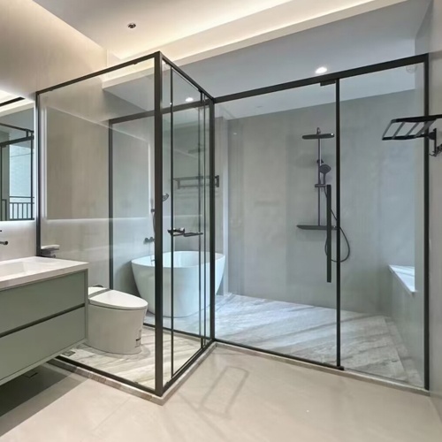 It features stainless steel or aluminum frame and clear tempered glass panel. Customized layout and opening method is available to meet the interior design requirement of bathroom