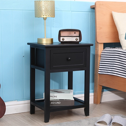 Hotel Nightstand Furniture with Solid Wood Leg and Dovetailed Contruction Sliding Drawer