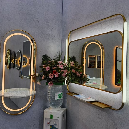 The metal frame is available with aluminum alloy or stainless steel for different budget and design. The mirror has a sandblasted band to reveal the LED lighting stripe on the backside of mirror. The mirror can also have a ambinet lighting effect as per request.